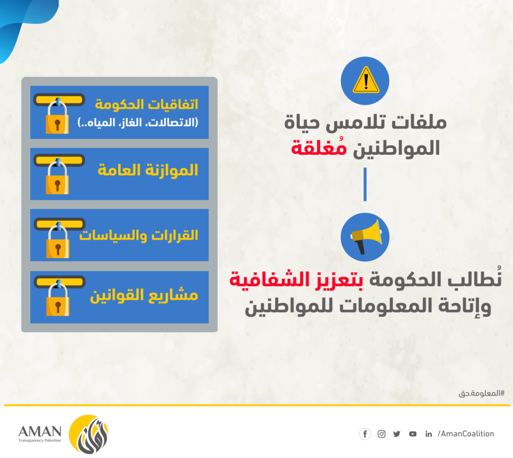ائتلاف أمان يكرر توصيته بضرورة تصنيف المؤسسات الرسمية لمعلوماتها ونشرها وإتاحتها لجميع المواطنين
