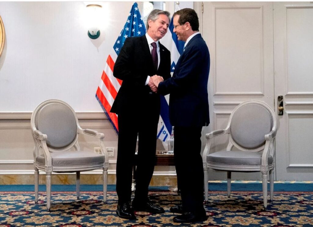 وفي مستهل لقائه هرتسوغ قال بلينكن إن الولايات المتحدة وإسرائيل “تقفان جنبا إلى جنب ضد ممارسات إيران الخطيرة والمزعزعة للاستقرار والإرهابية”.