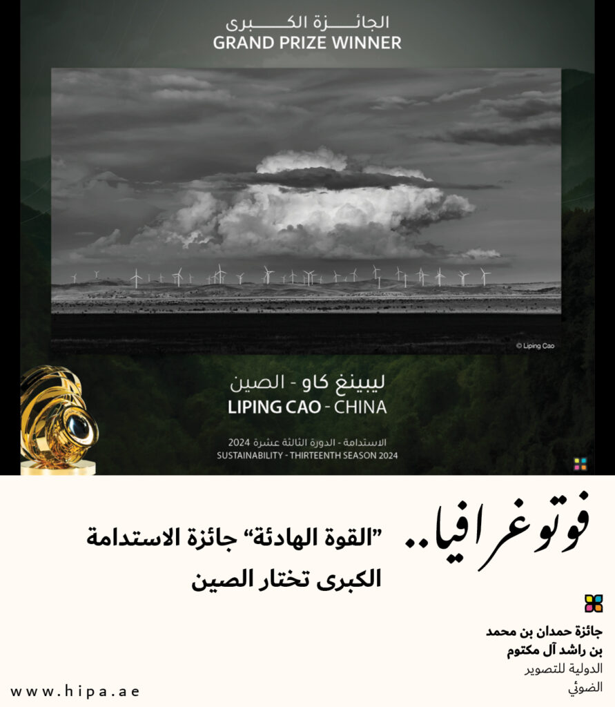 المصور الصيني “ليبينغ كاو” الفائز بالجائزة الكبرى “200 ألف دولار” تحدّث للصحافة عن صورته الفائزة، حيث استوقفه المشهد الذي يُجسّد جَمَالية التقاء الطبيعة بالتكنولوجيا، مع ارتفاع التوربينات الشاهقة في الأفق، ودوران ريشها ببطء مع النسيم، ما يُجسّد القوة الهادئة للطاقة المُتجدّدة، فقرر التقاط الصورة فوراً، لما تحمله من خلفية ديناميكية في السماء، ثم قرّر تقديمها بالأبيض والأسود. وعن فوزه قال: الجائزة مكافأة على رحلتي مع العدسة التي امتدّت لنحو 40 عاماً، والاستدامة من أهم قضايا العالم في الوقت الحالي.