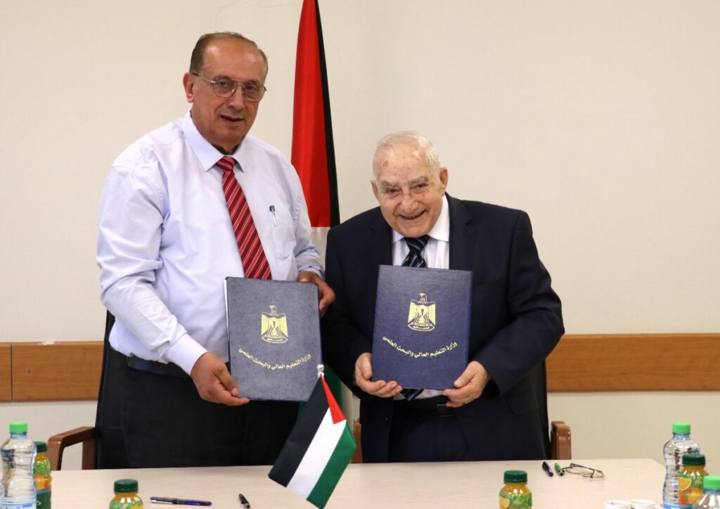 وقّع وزير التعليم العالي والبحث العلمي أ. د. محمود أبو مويس ورئيس المؤسسة العالمية لمساعدة الطلبة العرب أ. د. إسحق يعقوب القطب، اليوم الأحد، مذكرة تفاهم لتقديم مساعدات مالية وقروض دراسية للطلبة الفلسطينيين الملتحقين ببرامج الدراسات العُليا في مؤسسات التعليم العالي الفلسطينية.