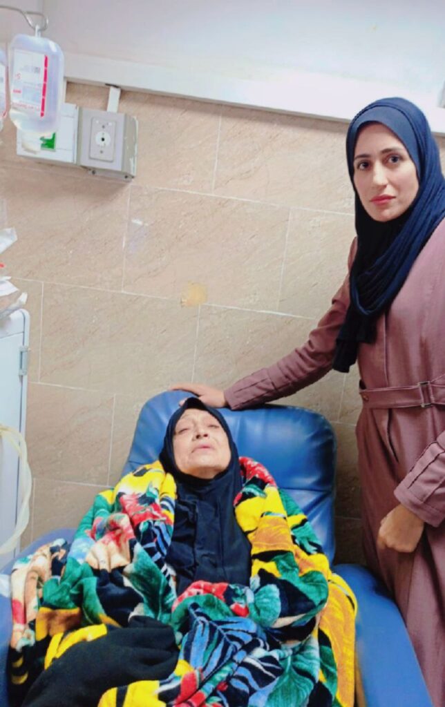 عندما تحدثنا إلى ابنتها سُهى، قالت إنه بعد مرور أكثر من عام على الحرب تعرضت والدتها للعديد من المواقف المؤلمة. لن تنسى يوم أُجبرت تحت جنح الظلام على الخروج بأمِّها من منزل أخيها لتقضي ليلة كاملة جالسة على كرسي متحرك أمدَّها به رجل، ولم يكن بد من أن تقضي عليه حاجتها تَبَوُّلًا وتبرزًا! تقول سُهى: “في تلك الليلة خرجنا تحت أزيز الرصاص نحو أقرب مدرسة، وهناك قضت أمي ليلتها تغفو وتصحو على الكرسي المتحرك. والأصعب أنها قضت حاجتها في ملابسها لعدم وجود حفاضات كبار السن معنا، ولم أتمكن من تنظيفها إلا في الصباح”.