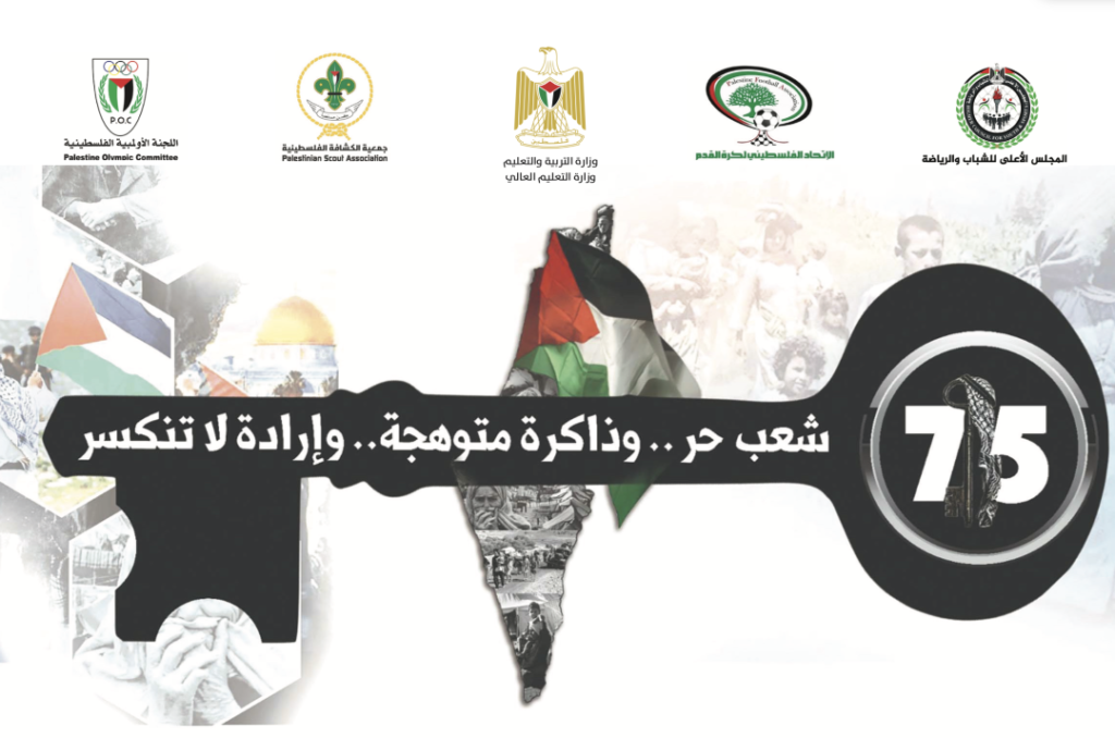 أطلقت المنظومة الرياضية الفلسطينية، بمكوناتها المجلس الأعلى للشباب والرياضة، واللجنة الأولمبية، واتحاد كرة القدم، وجمعية الكشافة والمرشدات، برنامج فعاليات إحياء ذكرى النكبة الـ 75، الذي سيقام على مدار شهر كامل، بالشراكة مع وزارتيّ التربية والتعليم، والتعليم العالي، وتمتد أنشطته لمختلف محافظات الوطن والشتات، تحت شعار “شعب حر.. وذاكرة متوهجة.. وإرادة لا تنكسر”.