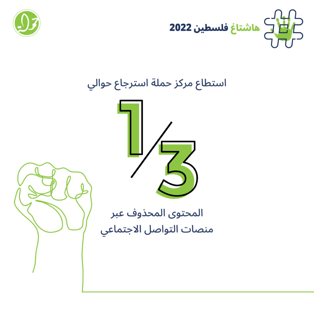 مركز حملة يسترجع ثلث المحتوى الفلسطيني المحذوف عن منصات التواصل الاجتماعي