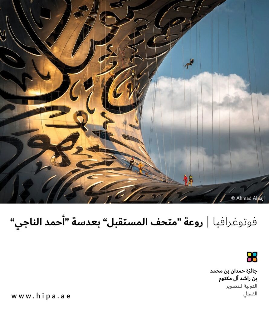 مجتمعات المصورين في العالم تُدرك أن صور هذا المَعلَم الفريد من مَعالِمِ دبي، تُعتبر من أكثر صور دبي شهرةً وانتشاراً حول العالم، بسبب فرادة شكله وتصميمه وتفاصيل جمالياته التي لا تنضب. إلا أن المصور الفلسطيني “أحمد الناجي” كان له نظرةً أخرى للمتحف، حيث استطاع إبراز ضخامته وروعة معماره من خلال باقةٍ من الصور التي تمّ تضمين صور العنصر البشري فيها، إذ نلاحظ مجموعة من العاملين المُعلَّقين بحبالٍ ملفوفةٍ حوله خلال ممارسة مهام عملهم. يقول “أحمد الناجي” أثناء حديثه مع موقع CNN بالعربية: إسوةً بمشاريعي و صوري الأخرى، أريد أن يشعر الناس بالذهول من التُحف المعمارية والمدن التي أقوم برصدها، للتعرّف إلى زوايا جديدة منها، وإبراز مدى ضخامة “متحف المستقبل” مثالٌ على ذلك.