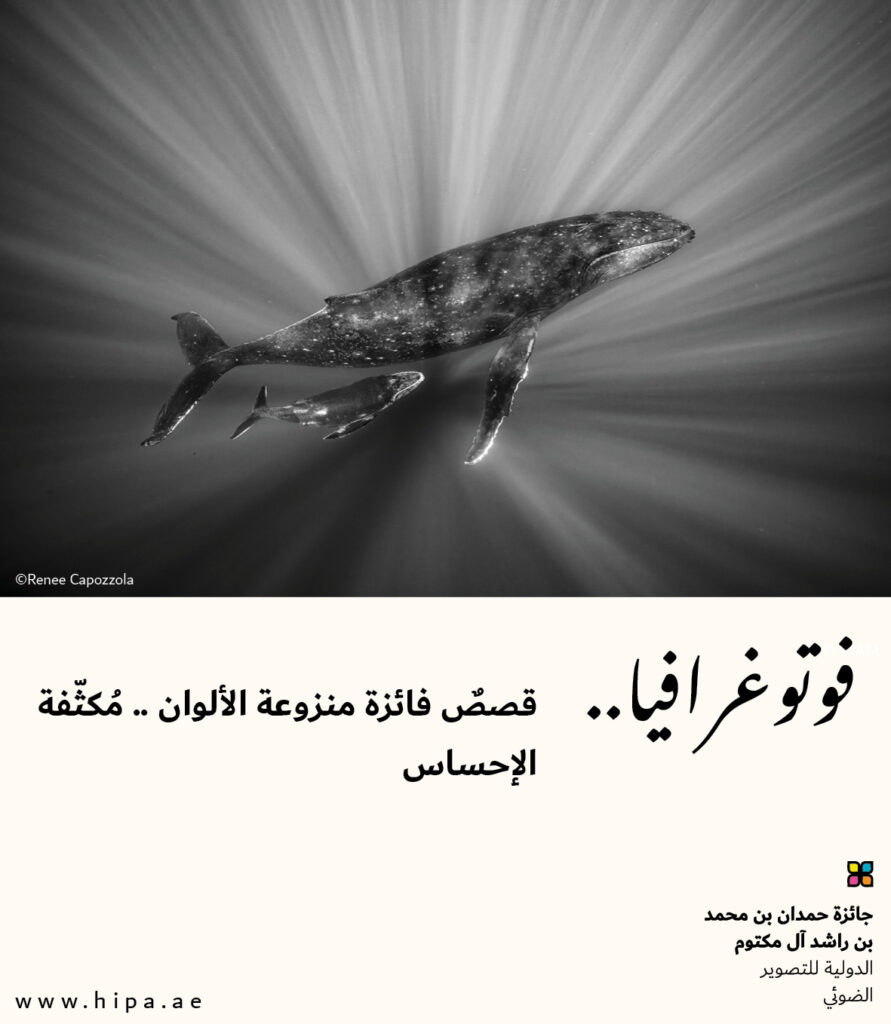 في المحور العام، الأبيض والأسود، لهذه الدورة، كان المركز الأول من نصيب المصورة الأمريكية “رينيه كابوزولا”، بصورةٍ بعنوان “رابطة الأعماق” نشاهد فيها أنثى الحوت الأحدب تسبح مع عِجلِها برشاقة في المياه التي يتسلل إليها نور الشمس قبالة تاهيتي. إن التناقض بين حجم الأم الهائل وشكل العِجل الأصغر حجماً لهو دليل على جَمَال علاقتهما الخالدة. هذه المخلوقات المُهيبة التي كانت تُصطاد في الماضي حتى أوشكت على الانقراض، صارت ترمز الآن إلى البقاء في مياه بولينيزيا الفرنسية الهادئة.