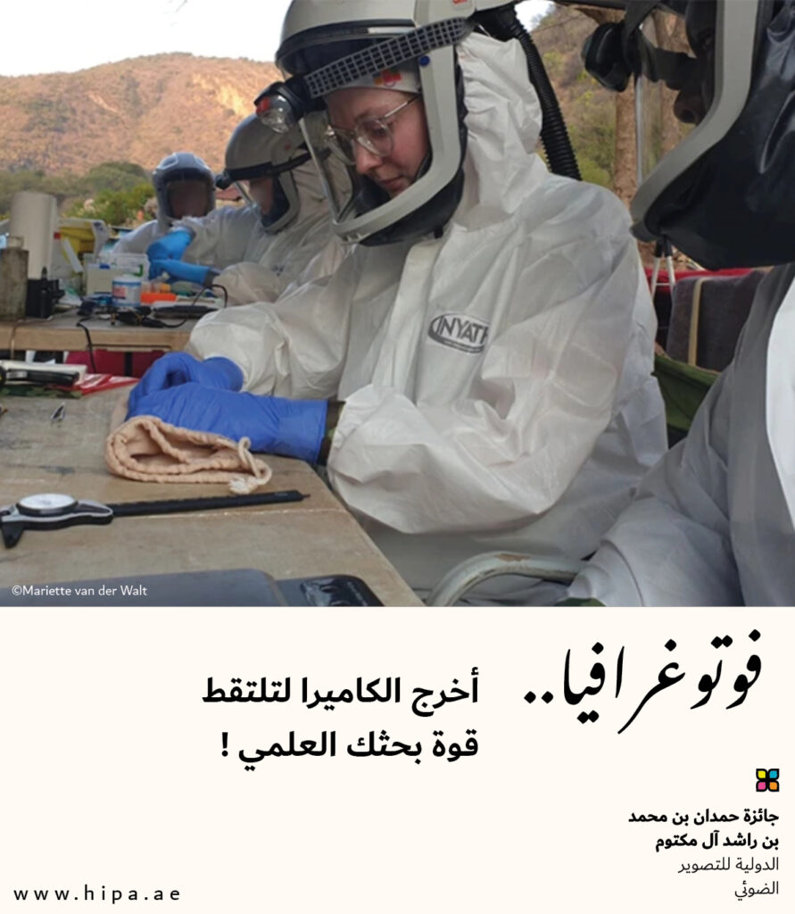 عملتُ لسنوات ضمن تخصّصي في علم البيئة فيما يتعلّق بالخفافيش، منغمسةً تماماً في جمع البيانات، قادتني أبحاثي حول الحفاظ على خفافيش الكهوف إلى أماكن نائية، كنتُ أزحفُ عبر الكهوف المُغطَّاة بذرق الطيور خلف الخفافيش. حينها كان التقاط الصور يُعتبر تشتيتاً للانتباه عن أبحاثي. قبل عامين، تركتُ العالم الأكاديمي للعمل في مجال التواصل العلمي في مركز GENUS بجامعة ويتواترسراند في جوهانسبرغ. واليوم أعمل مع الباحثين وأساعدهم في إضفاء الحيوية على علومهم من خلال قصصٍ مُقنِعة وتُشكِّلُ الصور الفوتوغرافية جانباً أساسياً من هذا العمل.