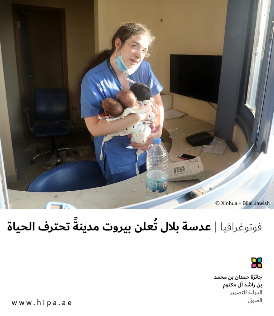 صورةٌ مليئة بالإنسانية في ظروفٍ متوحَشة للغاية، التقطتُ 6 صور فقط داخل مستشفى الروم، أهمّها صورة الممرِّضة البطلة “باميلا زينون” وهي تحتضن 3 أطفال خُدَّج لتعوِّضهم بعضاً من دفء حضّاناتهم بعد الانفجار الهائل الذي تسبَّبَ في أنهارٍ من الدم في المستشفى ! لقد نشرتُ هذه الصورة على حسابي في فيسبوك لأنها تعكسُ بطولة الإنسانية دون عناصر داميةٍ فيها ! رغم وجود عدة جثثٍ بالقرب منها، فلاحظتُ أن الصورة انتشرت عالمياً .. وقد أخبرتني “باميلا” لاحقاً شكرها لأنها اعتبرتها “صورة حياتها”. هذا ما قاله بلال جاويش، المصور اللبناني الصحافيّ في وكالة شينخوا الصينية، مُضيفاً: 16 عاماً من التصوير الصحافيّ والكثير من الحروب. أستطيع أن أقول .. لم أشاهد أهوالاً كالتي شاهدتها اليوم.