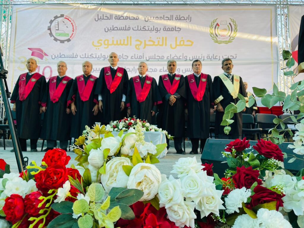 احتفلت جامعة بوليتكنك فلسطين بالخليل وعلى مدار يومين متتاليين بتخريج الفوج التاسع والثلاثين والأربعين من طلبة الماجستير والبكالوريوس والدبلوم، بحضور عضو اللجنة التنفيذية لمنظمة التحرير الفلسطينية ورئيس مجلس رابطة الجامعيين ورئيس مجلس أمناء جامعة بوليتكنك فلسطين الأستاذ أحمد سعيد بيوض التميمي، وأعضاء مجلس رابطة الجامعيين، ووزير الاتصالات وتكنولوجيا المعلومات الدكتور اسحق سدر، ورئيس الجامعة الدكتور أمجد برهم، ونوابه، وعمداء الكليات وأعضاء الهيئتين الأكاديمية والإدارية، وحشد كبير من المؤسسات الرسمية والأهلية في المحافظة إضافة إلى الخريجين وذويهم.