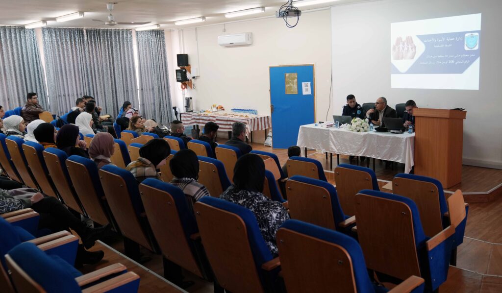 وتحدث كلا من، الدكتور قتيبة غانم مسؤول قسم الجرائم الالكترونية في الشرطة الفلسطينية، والرائد فادي دغلس نائب مدير حماية الأسرة والأحداث في شرطة جنين، عن محورين، أولهما عن حماية الأسرة والأحداث، ولماذا تم استحداث هذه الدائرة في الشرطة الفلسطينية، وثانيهما عن الجرائم الالكترونية، والتي يقع فيها الكثير من رواد الشبكة العنكبوتية.