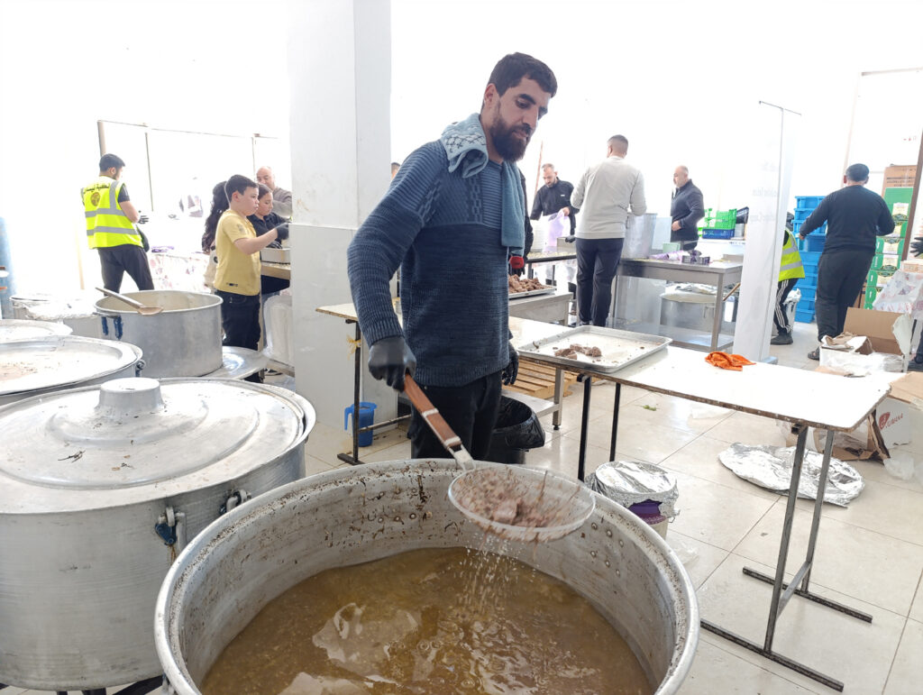 وظهرت وراء نضال طناجر وطهاة وعشرات المتطوعين، بينما اختلط ضجيج المتواجدين بأصوات المواقد، وسط مؤشرات محلية باتساع شريحة الفقراء في المدينة ومخيمها وريفها.