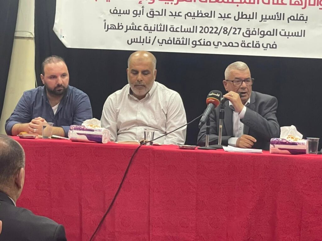 وقال نائب رئيس جامعة النجاح للشؤون الاجتماعية رائد الدبعي، في كلمته، إن الأسير الكاتب عبد العظيم عبد الحقّ ابن قرية قصرة، أحد قادة حركة “فتح”، وأحد رموز قطاعها الريفي، وأحد قادة ومؤسسي مؤسساتنا الوطنية والأمنية، والذي قرر أن يكون في طليعة المنتفضين منذ انتفاضة الأقصى عام 2000، ومن أوائل معتقليها، إذ اعتقل بتاريخ 15 تشرين الثاني 2000، وحكم بالسجن لمدة 34 عاماً، وكان هذا الاعتقال الرابع، وأمضى ما مجموعه 28 عاماً في الأسر.